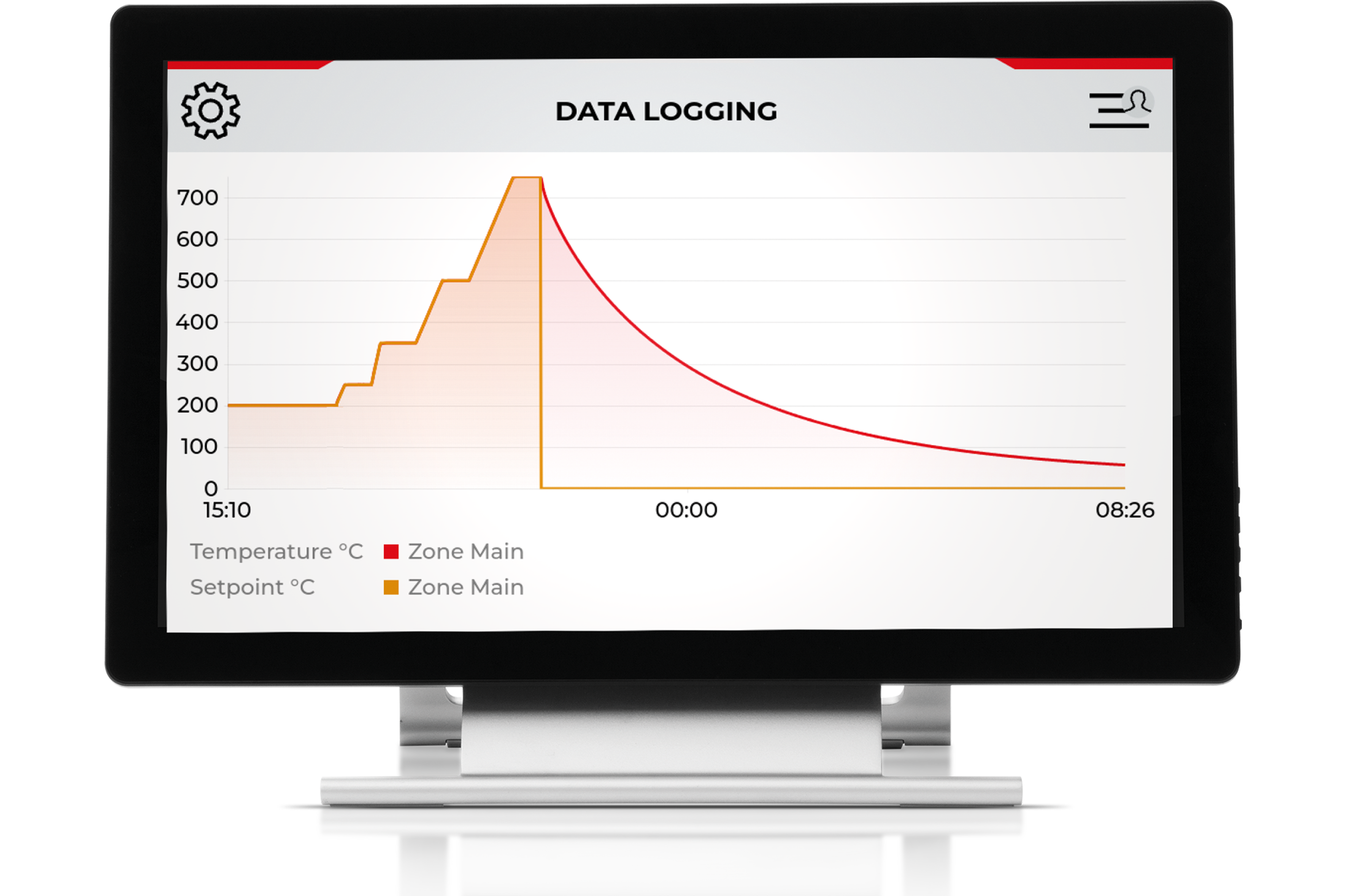The AriesPlus series provides a capacitive touch screen interface giving intuitive access to a comprehensive menu for selection and editing of program profiles; scheduling of programs at a defined day and time; data logging of setpoint and actual temperature; localization of language; user level security.